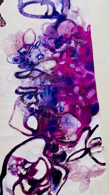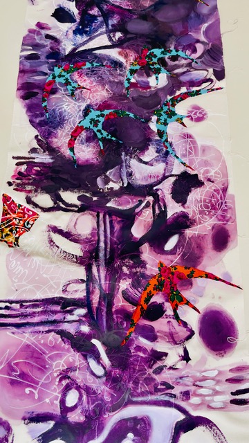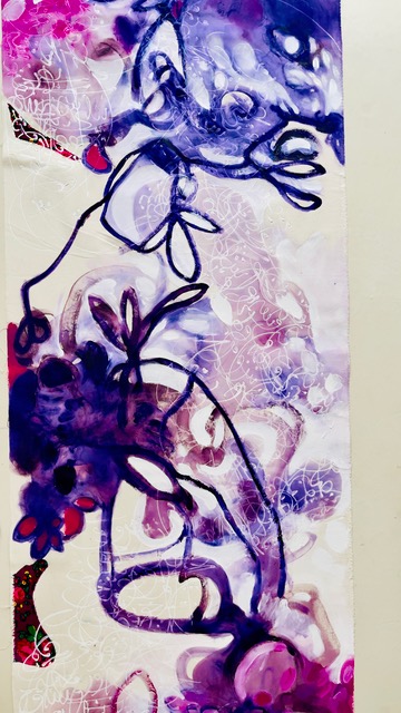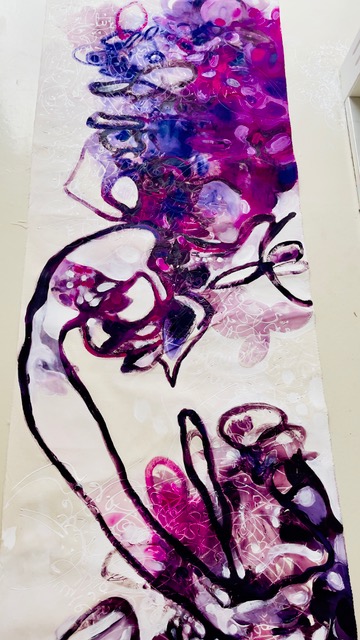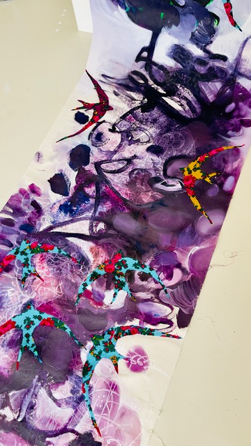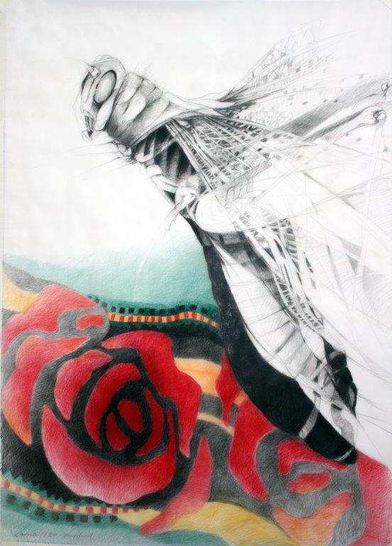 Sie bezeichnet damit meist sehr großformatige Papiere. Dabei spielen Schwarz-Weiß-Kontraste eine große Rolle. Thema in beiden Bereichen ist Tierisches, Menschliches und Pflanzliches. Im Zeichnerischen kommt es zu Doppelungen und Überlagerungen – Naturnähe. Es geht aber nicht um die reale Wiedergabe, sondern um die Veränderung der Form, die dadurch eigene Assoziationen beim Macher und Betrachter entstehen lässt. Tiere aller Gattungen stellt sie dar, manchmal in Kombination mit dem Menschen. Eine Bewunderung der Natur ist die Inspiration: Fell, Federn, Chitin – alles bestens eingerichtet.